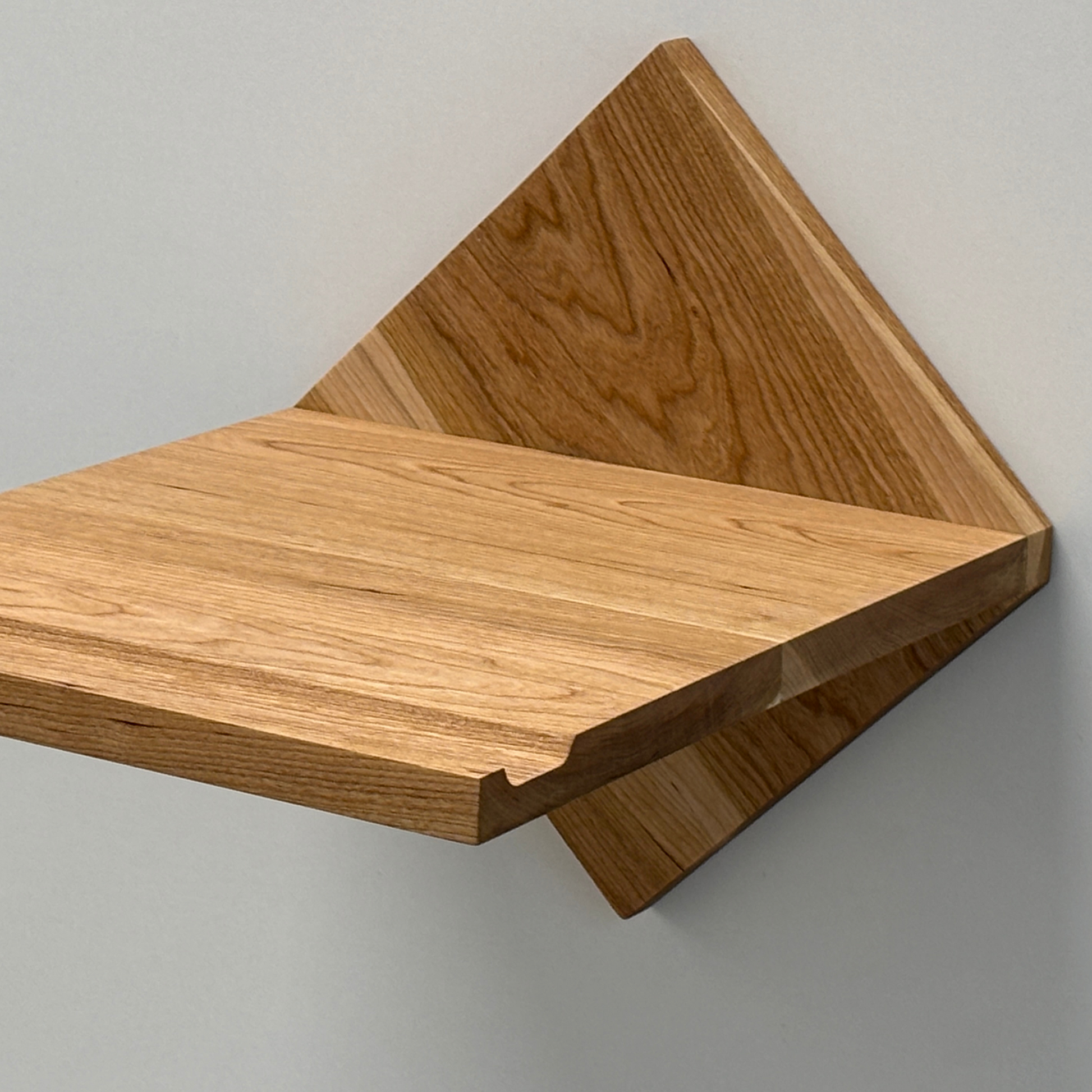 Add style and function to your space with this solid wood bike wall mount – diamond shape version (maple, ash, cherry, or black-stained ash). Its unique diamond-shaped design with shelf highlights your bike while also serving as decorative storage.