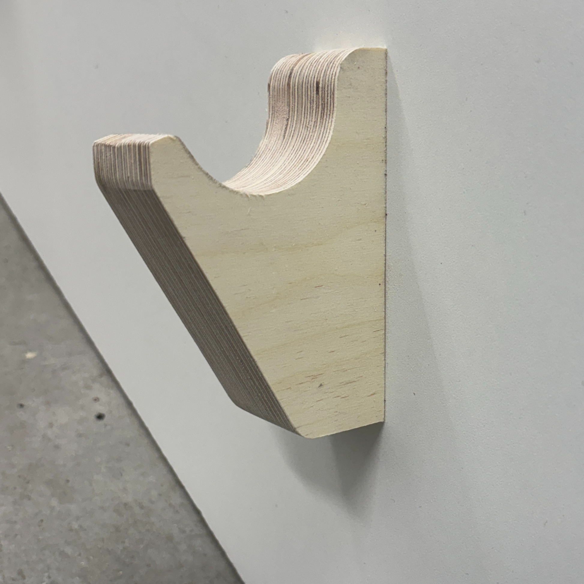 Support vélo mural design – Bois massif ou contreplaqué de merisier, accroche par roues et cadre, angle 15–20°, vis et ancrages inclus