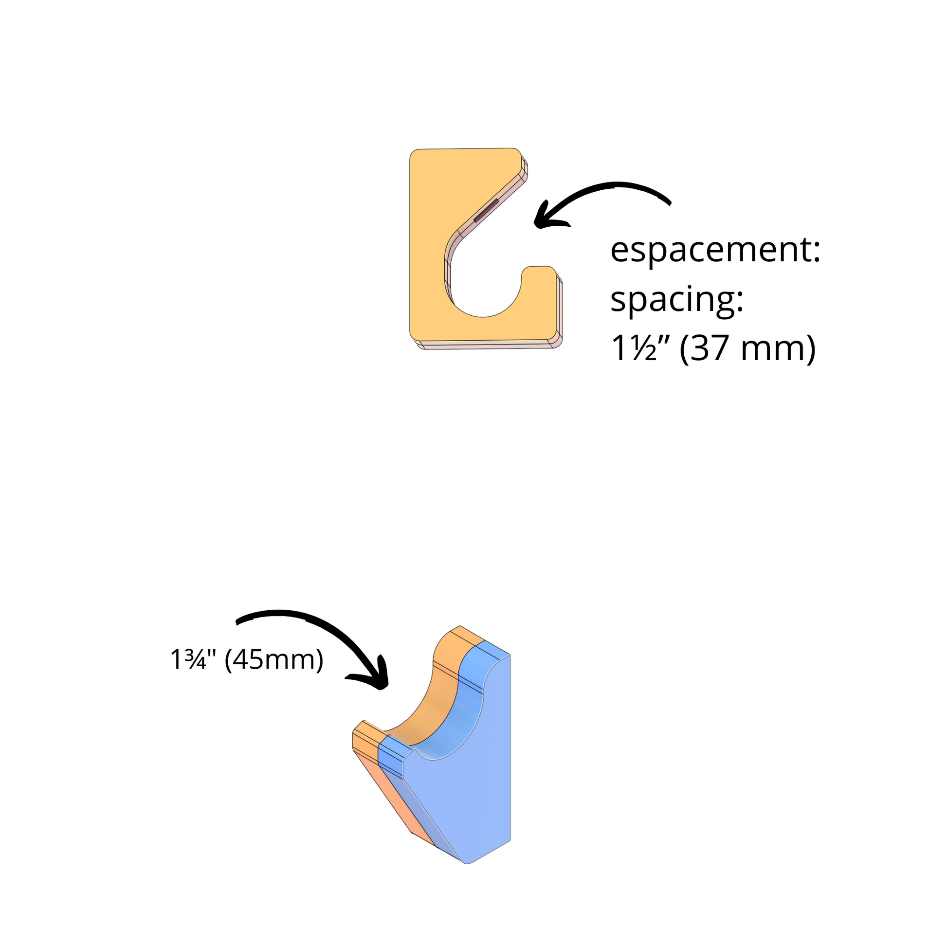 - Fixations invisibles : aucune vis apparente.