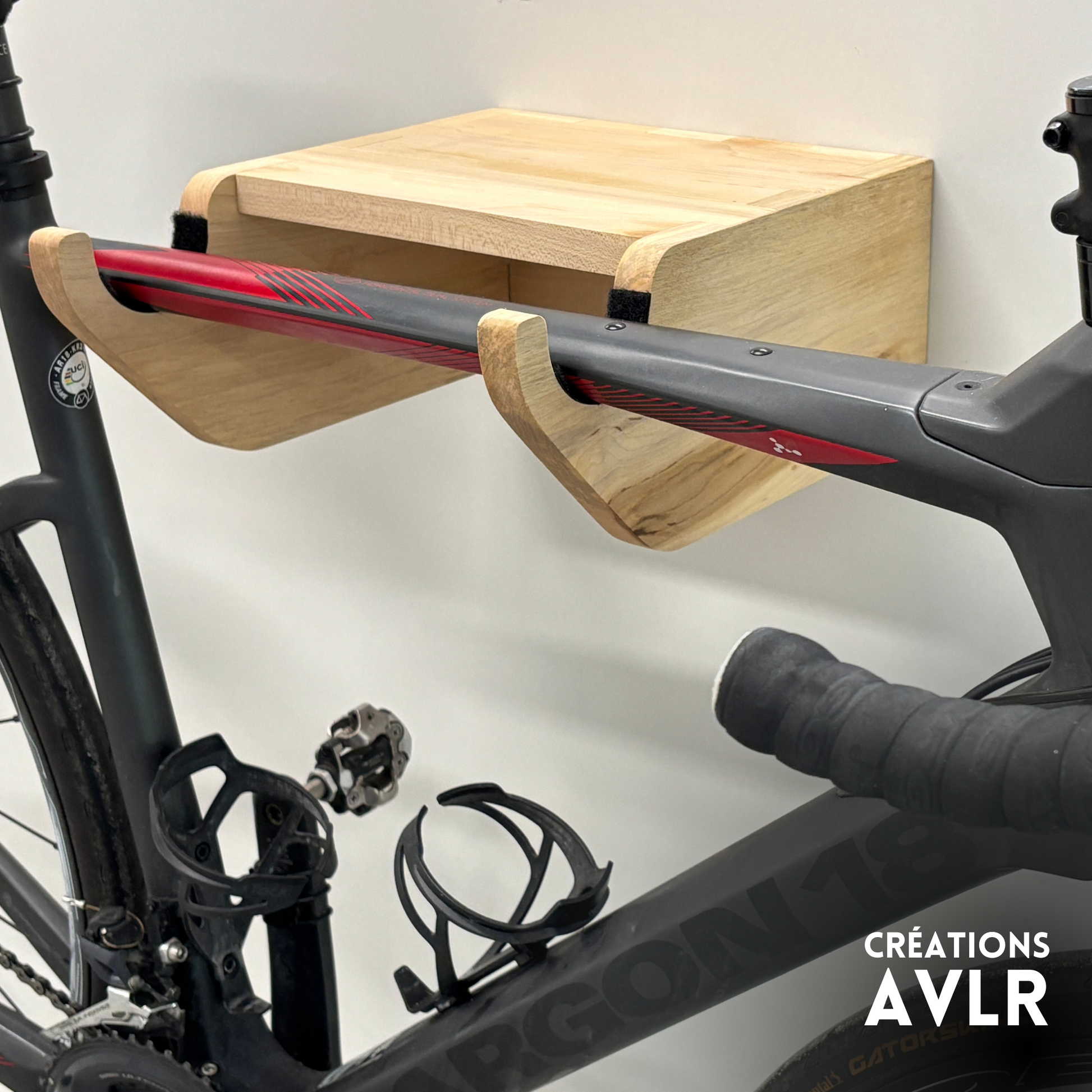 Support vélo mural en bois massif ou contreplaqué de merisier – Stable et solide, vis fournies, avec protection cadre